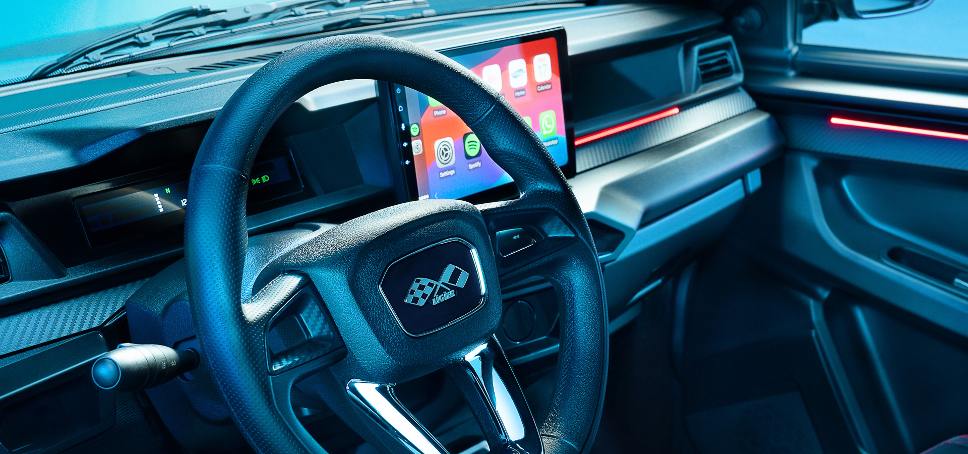 Zowel van binnen als van buiten is de nieuwe Ligier JS50 het toppunt van technologie. De JS50 is uitgerust met een 10” touchscreen tablet, voorzien van Apple Carplay en Android Auto, voor de ultimieme connectiviteit.
